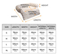 XL: 46 x 37.7 x 6.2 in (117 x 95 x 16 cm)