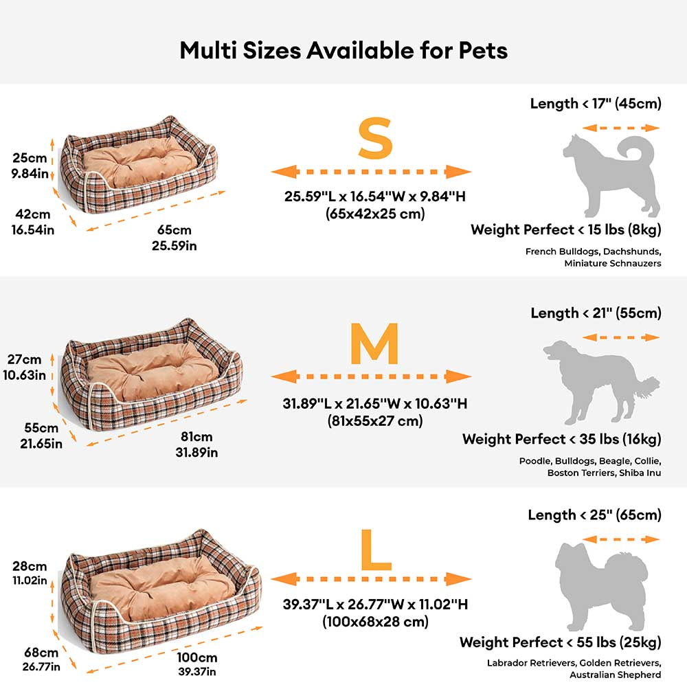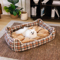Classical Retro Plaid Removable Bolster Calming Dog Bed - Nostalgic Retreat