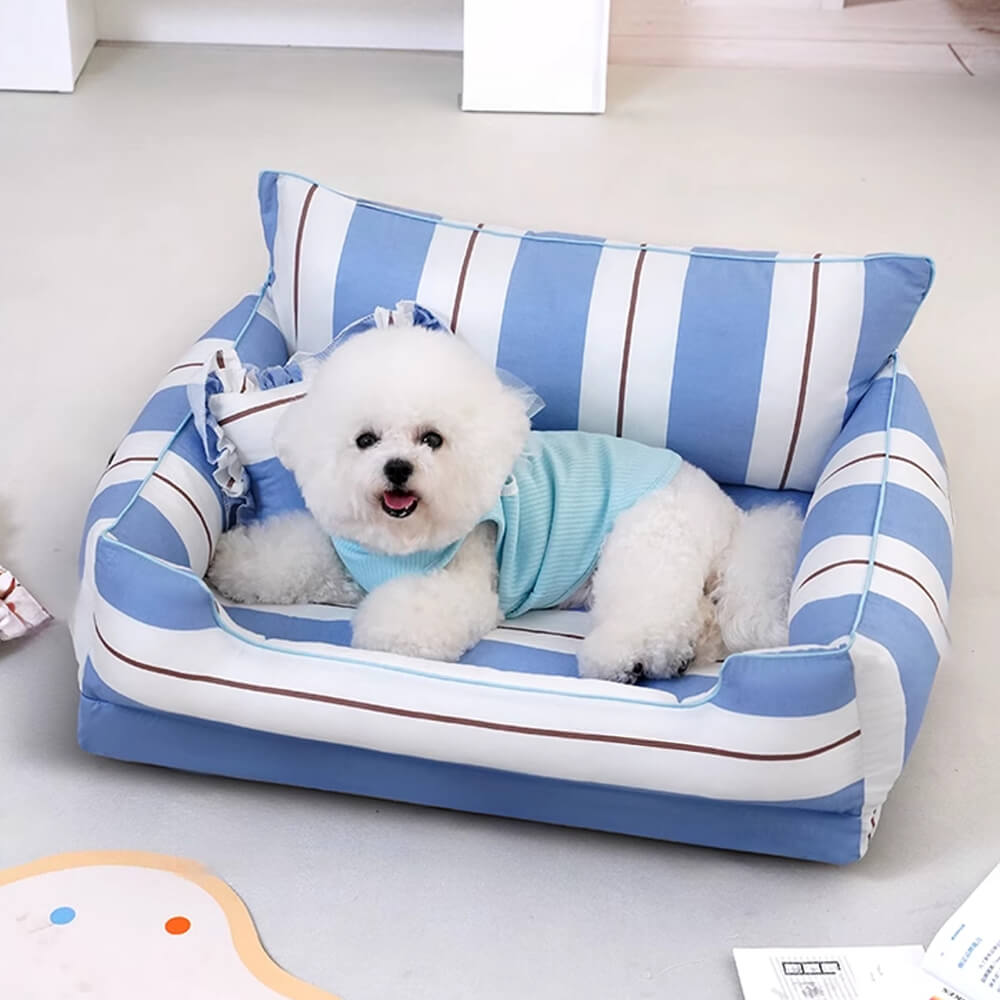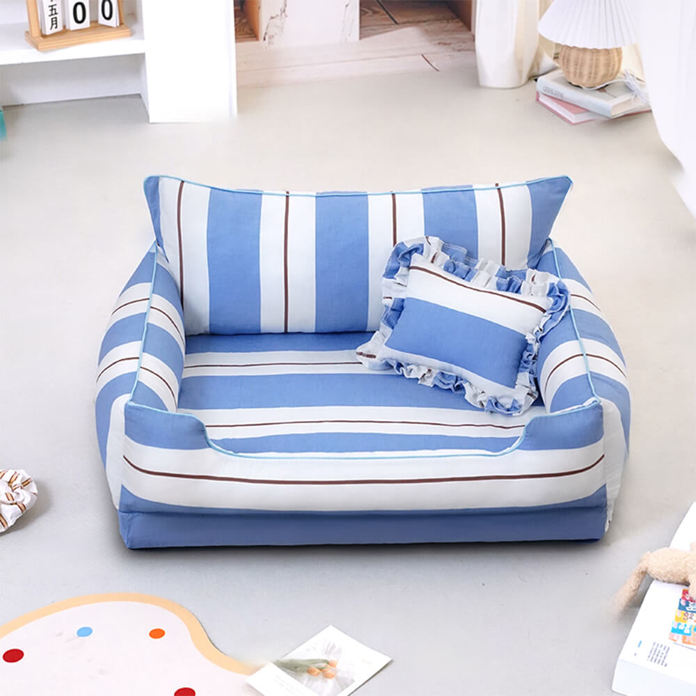 Cotton Full-Surround Dog & Cat Sofa Bed with Pillow