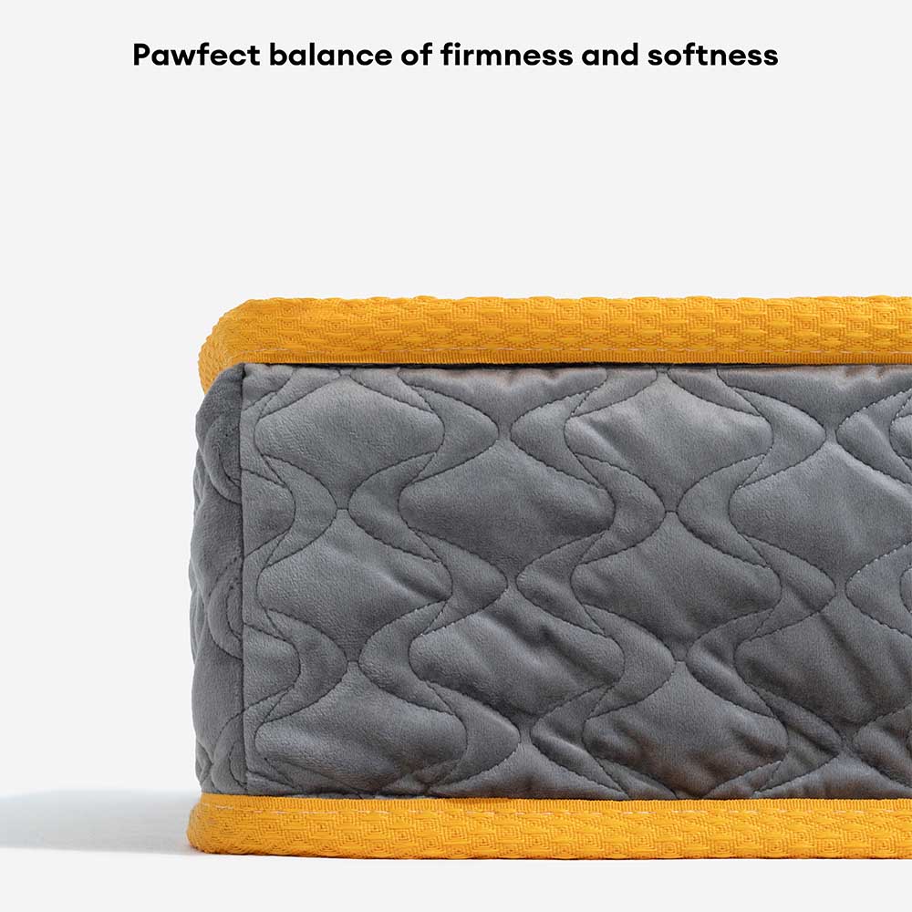 Human-grade Innerspring System for Joint and Muscle Support: A 10cm innerspring coils system, provides flexible support, increased airflow and durability along the edge of the mattress. It maintains its shape for years to come and helps prolong the dog's healthy life as time flies. During sleep time, adapting to each growing stage of the dog's lifespan strengthens the dog's joint health and spine alignment precisely by relieving pressure and pain.