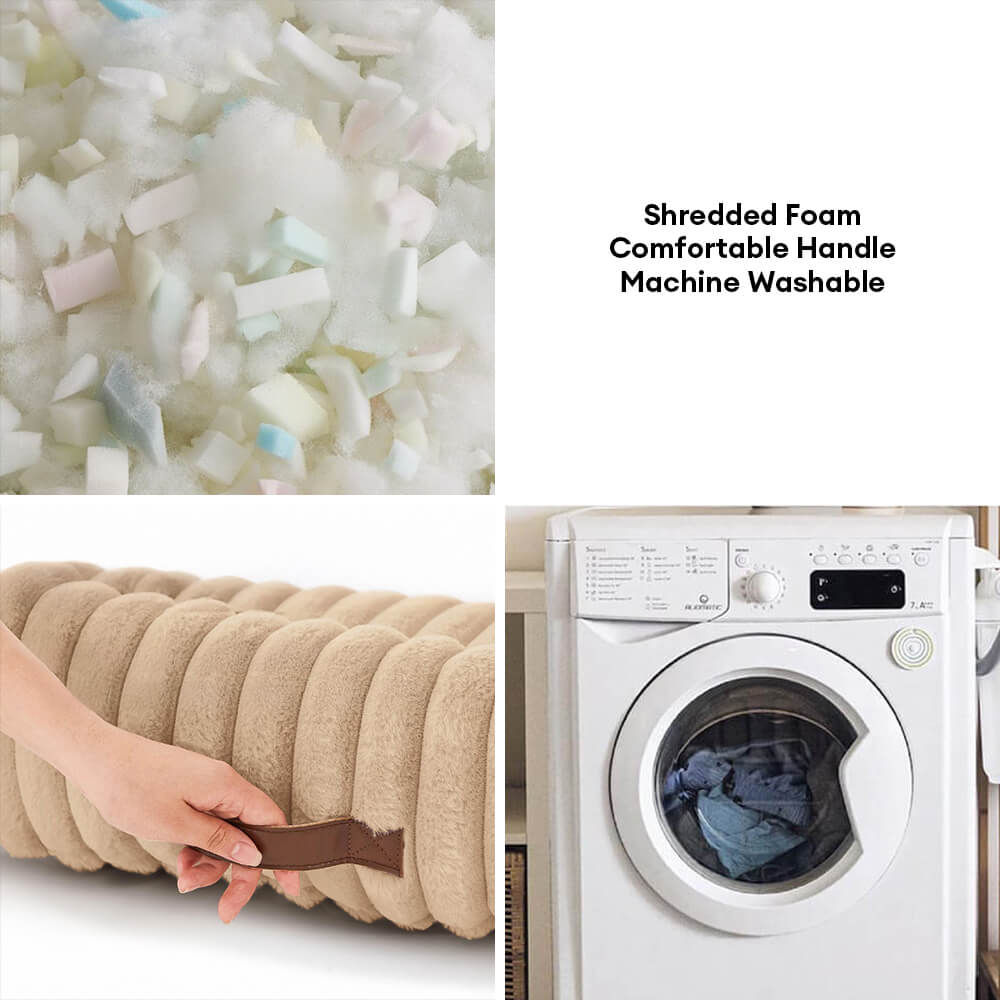 - Simplified Assembly Instructions: Unbox the bed’s cover, support pillows, and cushion. Turn the bed cover upside down and unzip. Insert the pillows into the designated pockets, adjust them securely, and zip closed. Place the base cushion in the center pocket, reshaping as needed. Your pet's cozy bed is now Pawjito assembled and ready for use!